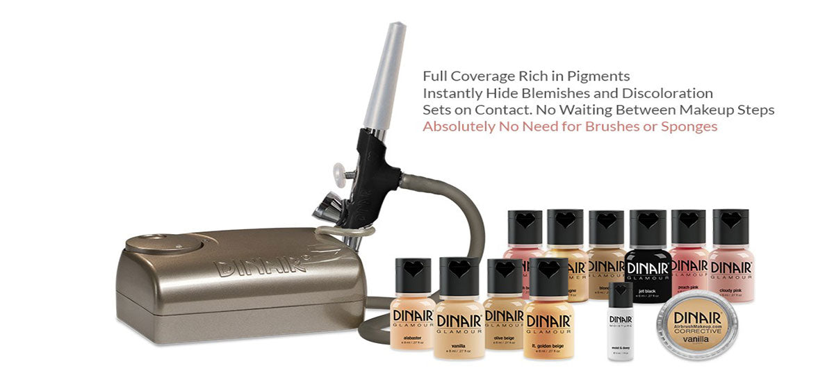 Distribution Dinair is your Canadian Distributor of Dinair products, and training. Dinair products are an entirely new way to apply color to skin. It sprays a gently mist of air and the Dinair Aircolors can be blended and mixed to look incredibly natural.
